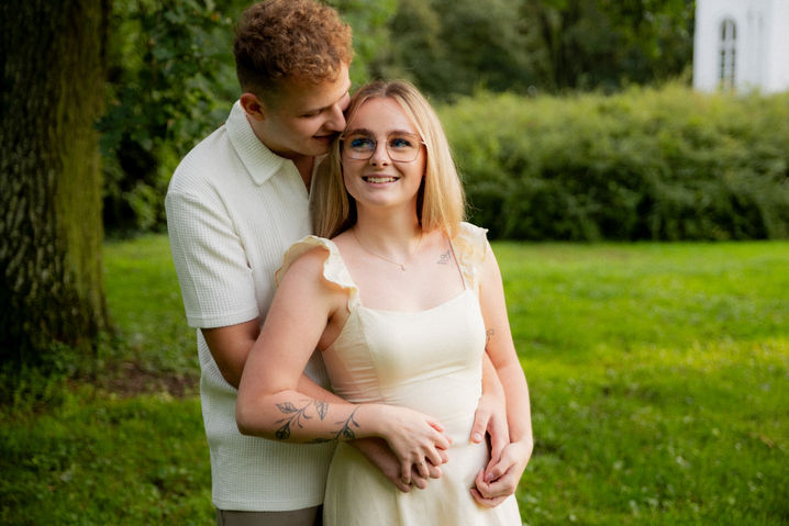 Sesja narzeczeńska Mai i Patryka miała klimat pełen naturalności i romantyzmu. Najpierw otoczenie Pałacu w Osowej Sieni – z jego wyjątkową architekturą i spokojem wokół – stworzyło piękne, klasyczne tło. Potem przenieśliśmy się do przypałacowej szklarni, gdzie światło i naturalne detale nadały zdjęciom intymny, subtelny charakter. Razem wyszło połączenie dostojności miejsca z lekkością i bliskością zakochanych.